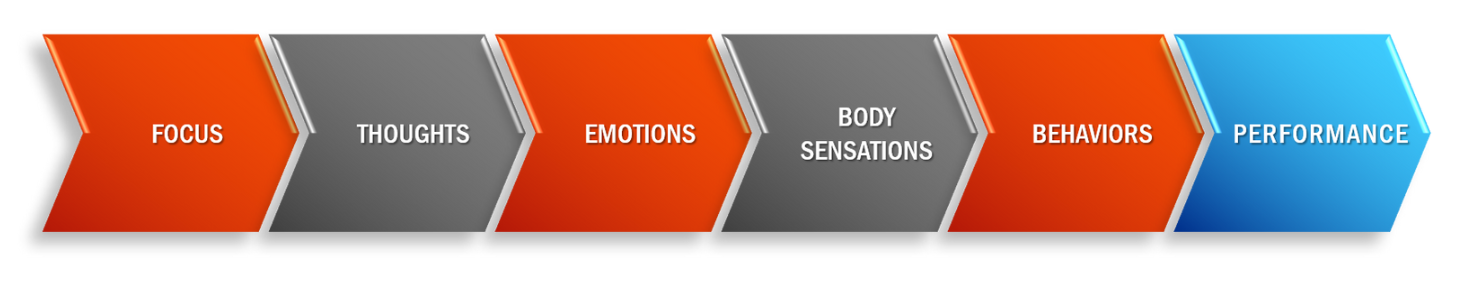 Focus → Thoughts → Emotions → Body Sensations → Behaviors → Performance.